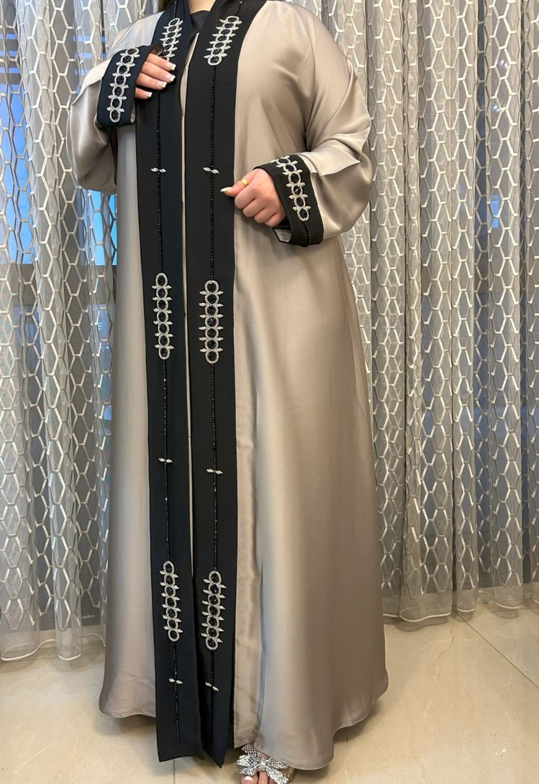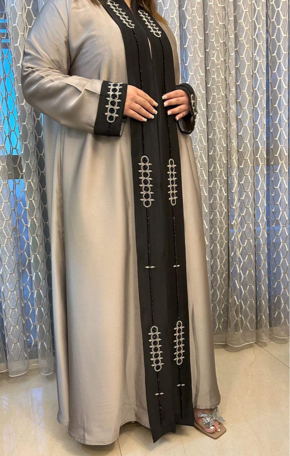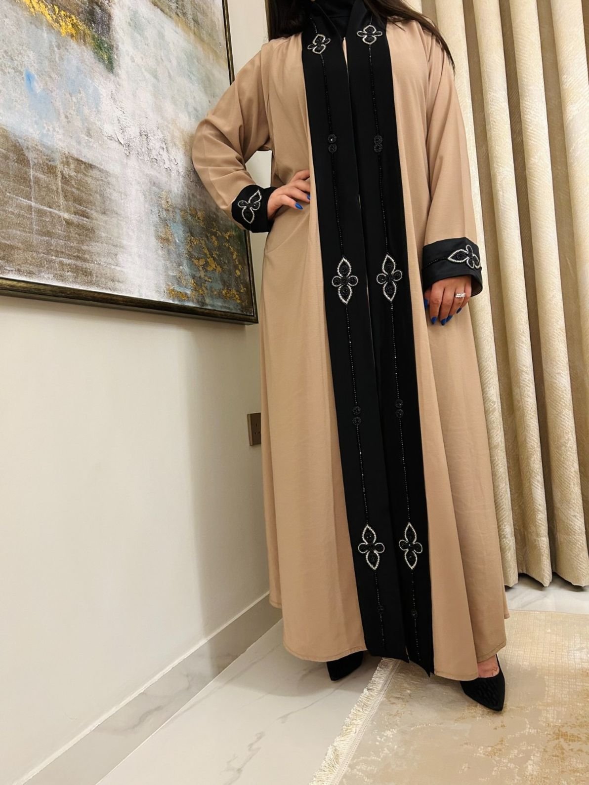 Perfect Symmetry is a classic abaya crafted from premium Korean Nida, featuring delicate hand embroidery with subtle beaded details for refined elegance.