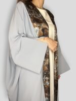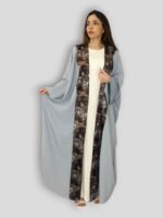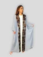Half Bahraini abaya Earth and Sky flows with grace and meaning. This open abaya combines elegance with thoughtful design. It is crafted from premium Nida fabric that drapes smoothly and feels light on the skin.