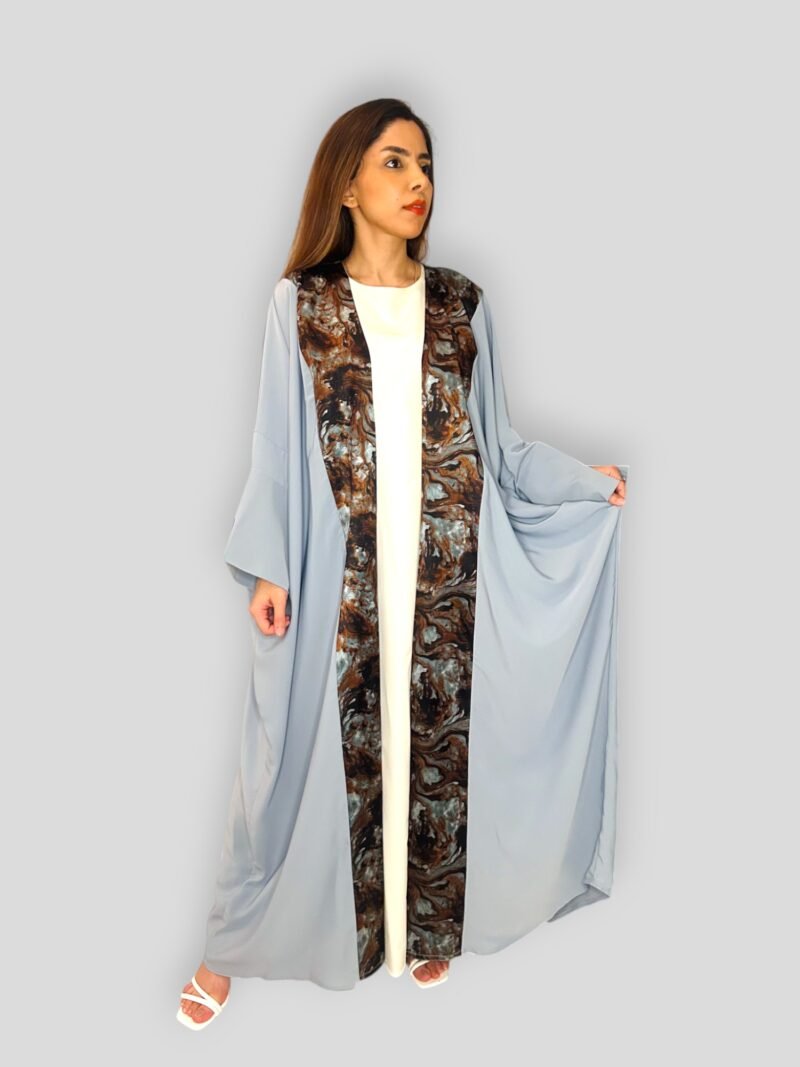 Half Bahraini Abaya – Earth and Sky in Nida Silk | Minal Khaleej